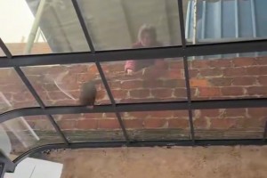 大娘嫌男子所建玻璃房挨着自家墙,持锄头砸房