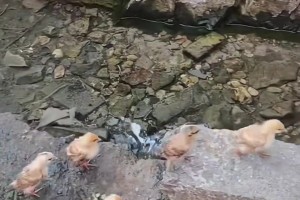 鸡妈妈带7只小鸡过河,首只小鸡因聪明获网友夸赞
