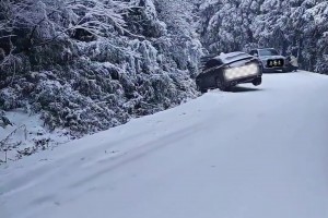 游客自驾齐岳山赏雪,座驾意外成亮丽风景线